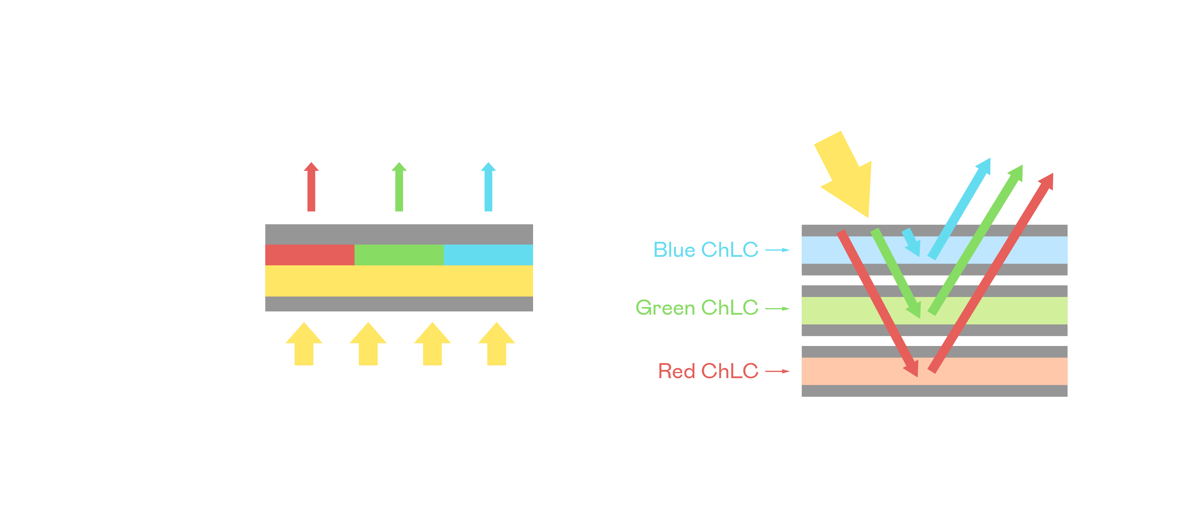 jinnian金年会胆固醇液晶显示器是由红、绿、蓝三层胆固醇液晶面板堆叠而成,并采用无彩色滤光片设计,减少环境光在反射过程中的损耗。